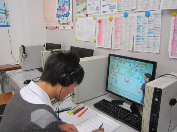 高校生が映像授業(ベリタスアカデミー)を受けているところです。