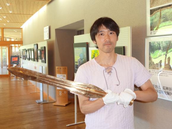久しぶりに出雲旅行の続きです。 二日目の最初の目的地は「荒神谷遺跡」です。小学生の頃から歴史が好きで、大学で古代史のゼミに入った(学部は教育学部です)僕としては、出雲に行くなら是非にも寄りたい場所です。 この遺跡、目茶苦茶有名で、だれでも知っていると思っていたのですが(少なくとも歴史好きは)、嫁さん(歴史好き)や嫁さんのお義父さん(同じ)が知らなくて、少しショックでした。 この遺跡が発見された発端は、道路建設の計画でした。事前の調査で土器が出土したこで、調査範囲を広げてみたところ、大発見につながったのです。 その大発見とは、358本もの銅剣です。一か所からこんなにも大量の銅剣が出土したのは、他に例がありません。また、さらに調査を進めると、16本の銅矛と6個の銅鐸が出土しました。同じ場所から銅矛と銅鐸が出てくるというのも、考古学の常識を覆す大発見です。 現場では、出土当時の様子が再現されています。 出土場所近くの博物館では、出土状況を再現したジオラマや映像によって、発掘当時の様子を知ることができます。 ちなみに、出土品そのものはここにはなく、出雲大社横の歴史博物館で展示されています(ここが次の目的地です)。 文献がないため、なぜこのような大量の青銅器を埋めたかは分かりません。古代史の謎のひとつです。僕は、出雲政権と大和政権の争いに関係があるのではないかと思っています。 謎に対してあれこれ考えるのも、歴史の面白さの一つです。 さて、遺跡周辺は公園として整備されています。その中の目玉が、「2000年ハス」です。文字通り、出土した2000年前のハスの種からつくった花畑です(DNA研究によると、さらに年代を遡る可能性があるのだとか)。 約5000本の花畑は、壮観です。僕らが訪れた日は、見頃の期間にあたっていました。これは偶然ですので、とてもラッキーでした。 では、最後に。レプリカの銅矛を構えている僕です(笑)